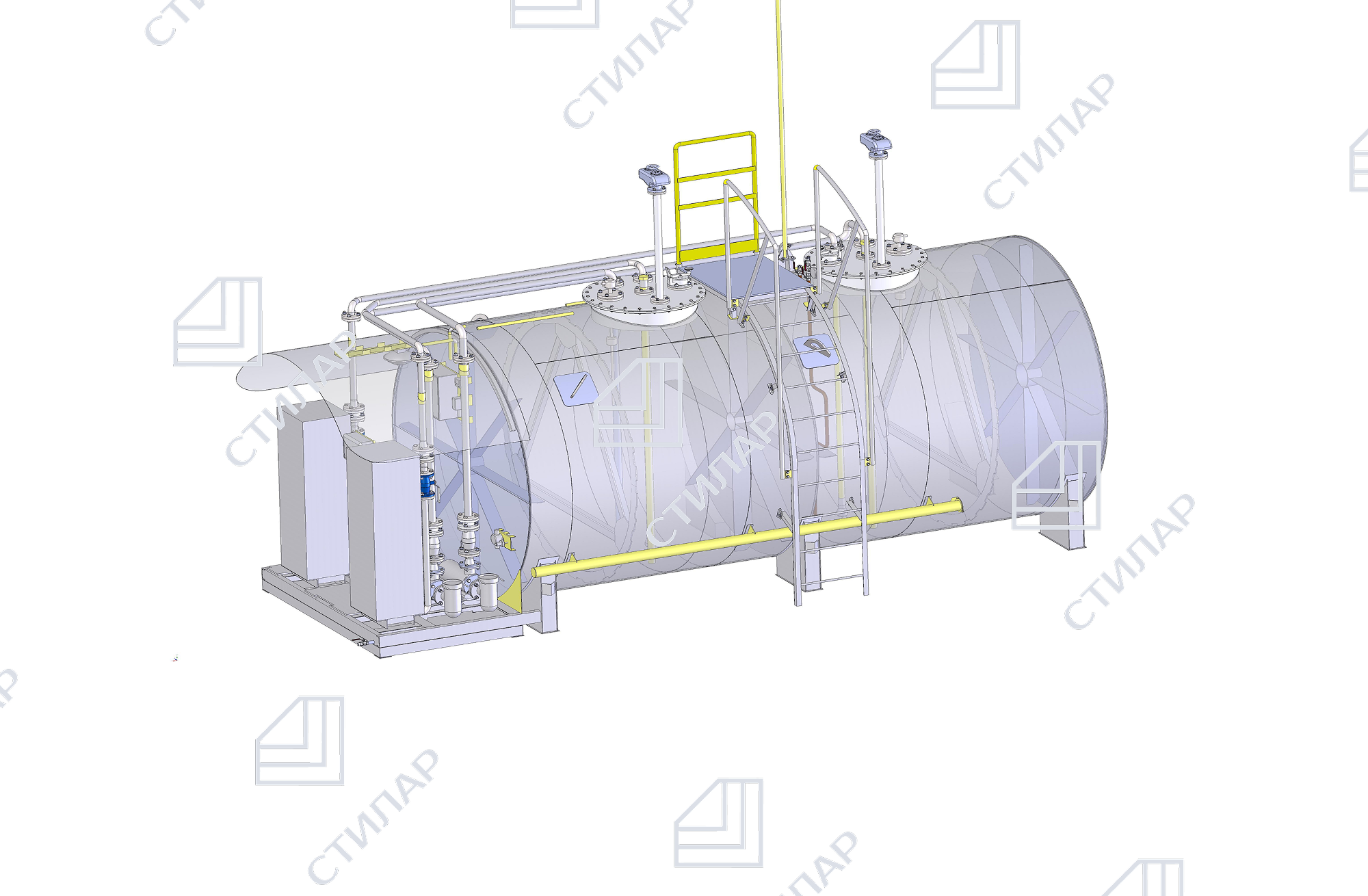 • Двустенный резервуар для хранения топлива (материал — сталь Ст3 или 09Г2С)
